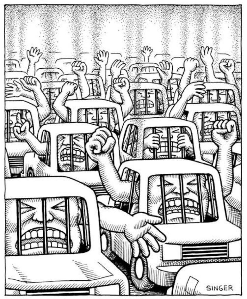 C -” Så du menar när vi kommer in i stan och jag kan hålla högre hastighet än bilarna i sina köer, att när jag blir hindrad i min framfart att jag har rätt att bli irriterad och använda mitt fordon till att hota, skrämma och misshandla bilförarna?”