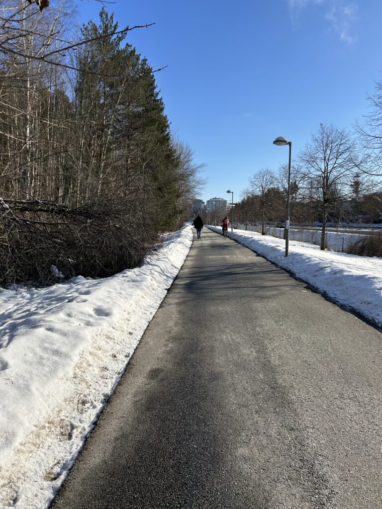 Sopsaltade gång- och cykelbanor ger avsevärt säkrare förhållanden för de som går och cyklar. Såväl under vintern som under våren.