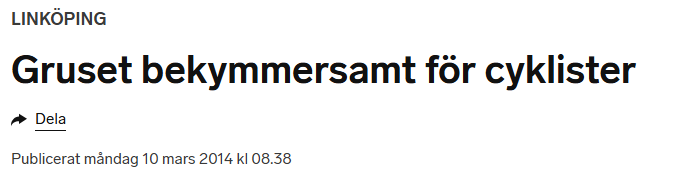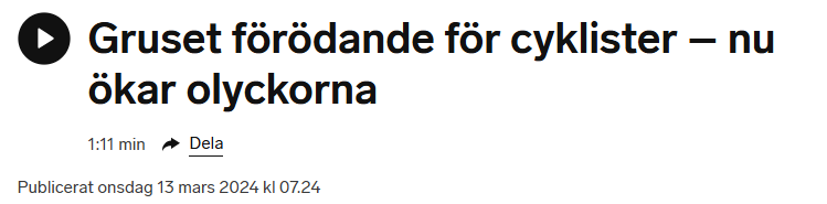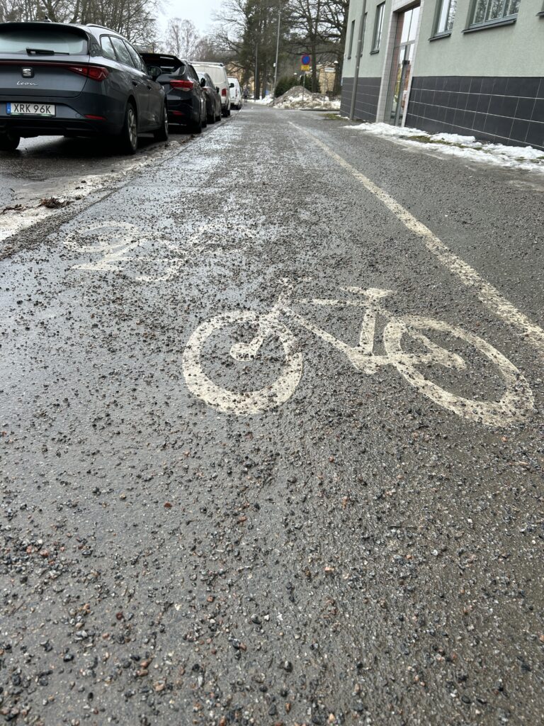 Så här års ser många av landets gång- och cykelbanor ut så här – de är mer eller mindre gödslade med grus. Till ingen nytta, bara till elände och ökad olycksrisk. Grus som blir liggande i månader innan det tas bort. I många fall blir gruset liggande till mitten av maj.