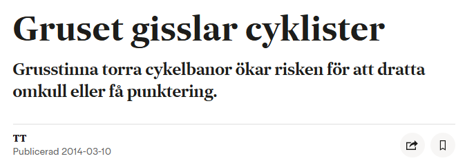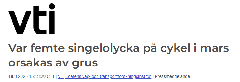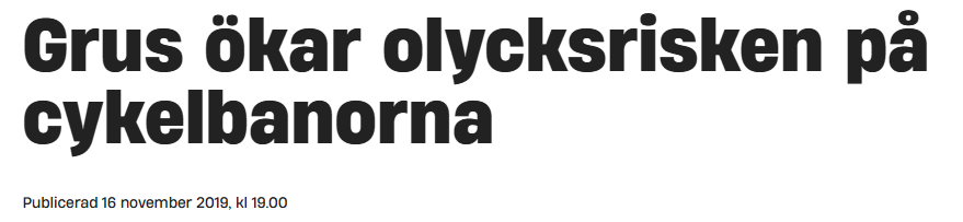 En studie från VTI visar att 10 procent av cykelolyckorna, sett över hela året, beror på gruset. Enligt Anna Niska uppväger inte de dagar då gruset eventuellt gör nytta olycksrisken när gruset ligger kvar på barmark.
