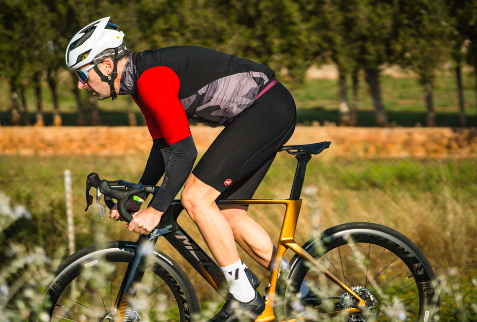 Jag fick chansen att hårdtesta cykeln under några dagar norr om Valencia i Spanien. Det första som slår mig är att det nog är den absolut snyggaste Meridan jag skådat. Genomtänkta färger med linjer som skapar ett utryck som andas både fart och tidlöshet. Att sadelstolpen nu har 0 offset placerar mig direkt i en position jag föredrar och i kombination med de relativt breda däcken känns komforten genast hög. Pro logo sadeln har jag inte mycket till övers för så det blir nog cykelns största minus, men en sadel ska så gott som alltid bytas ändå, så det har min arma bakända överseende med.